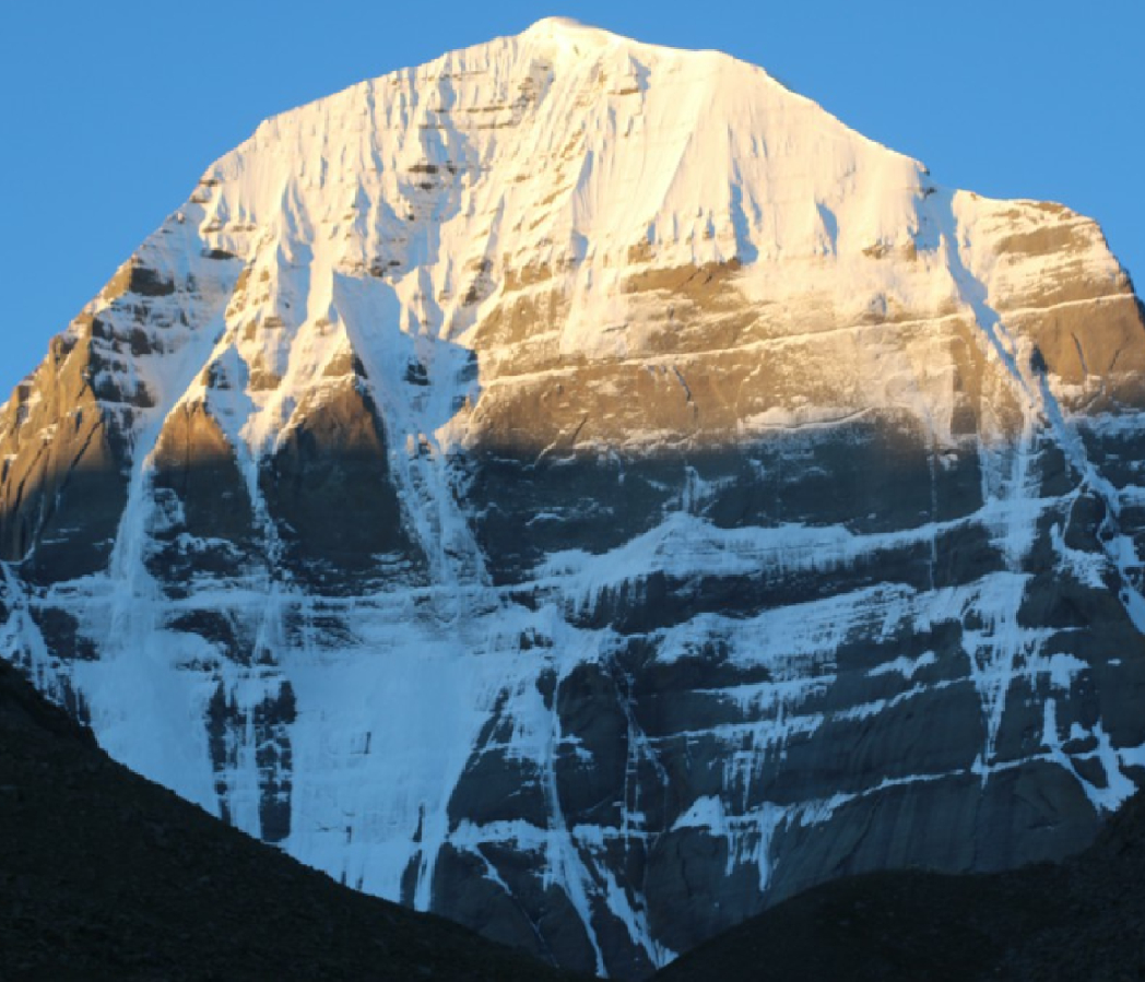 Mount Kailash is one of the most important energy portals of the earth as it has been consistently accepted as the Earth’s crown chakra or Sahasrara chakra in many ancient historical references. The tantric masters of India, through their correspondences of “As above, so below,” state that the Supreme Consciousness in a human being or Lord Shiva resides both upon the physical Mount Kailash, as well as upon the “Mount Kailash” within the body, that is, the human crown chakra. The spiritual importance of Kailash dates back to the Bon and Hindu religions. Sacred to five major religions of the world, the Hindus, Buddhists, Sikhs, Jains and Bons, Kailash is the physical aspect of the spiritual Mt. Meru, a tangible aspect of divinity on Earth.