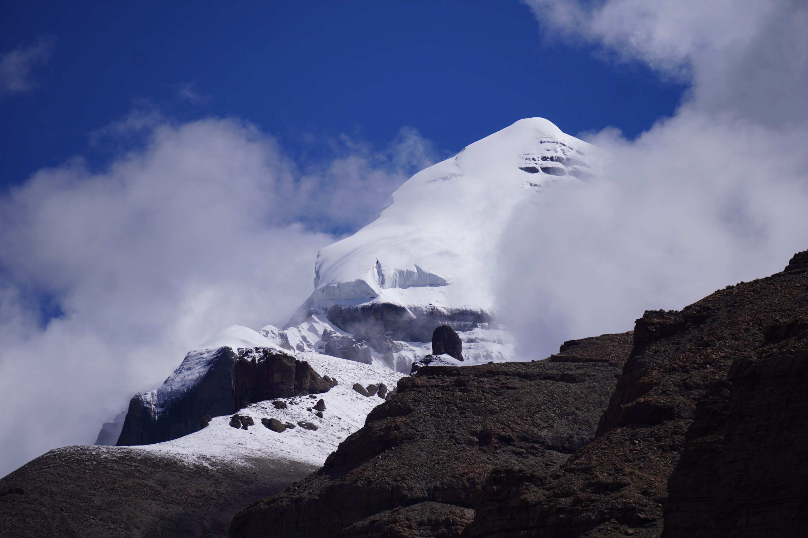 Kailash stands in the middle of many mountains,like the eternal Shiva Linga. Clouds constantly perform “abhishek” (ritual bathing of the deity) on the Linga. The Shiva Linga represents the Supreme Lord, The Eternal Parabrahma. Only when Shiva calls can one touch the soil surrounding Kailash. It is the ultimate destination of every man. It is the abode of salvation, the ultimate dissolution. Kailash reflects everything that makes life on earth. Being one with Shiva! Being Shiva!